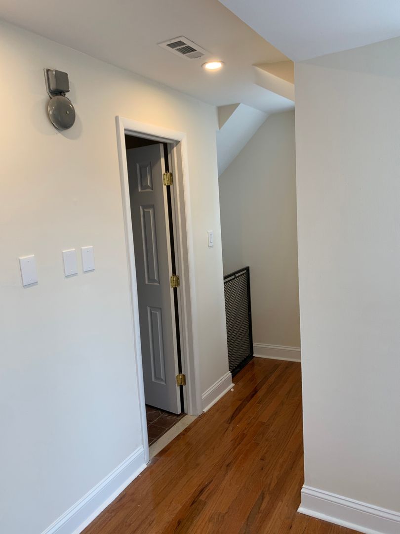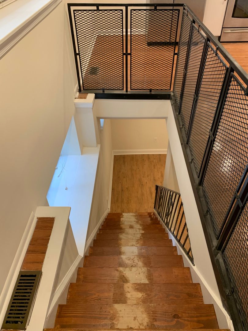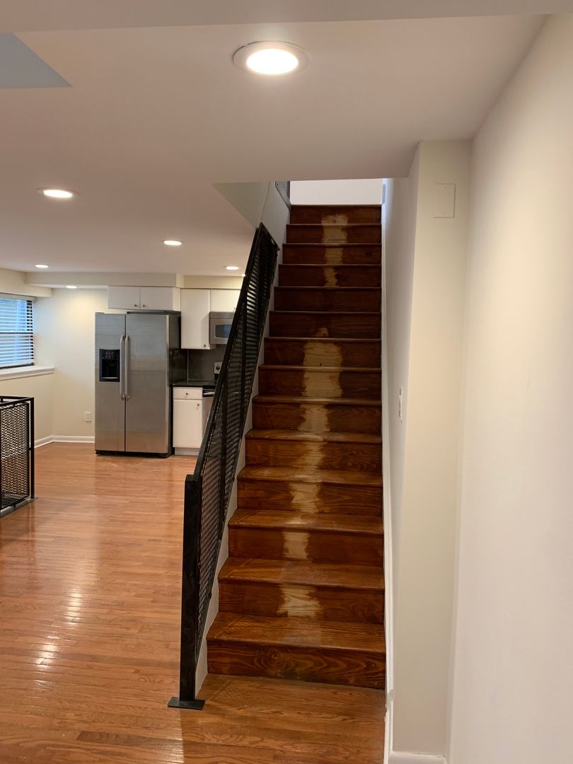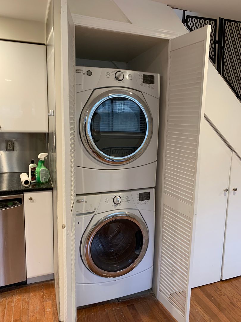 This apartment is nice and quiet as it is on the rear of the building. Enter on the first floor to hardwood floors spanning the living room and kitchen which features stainless steel appliances and granite counters. Take the stairs up to the 2nd floor to a bright bedroom & bathroom with a large closet that has built-in organizers. There is also enough room for small sitting area or home office on the 2nd floor. From the kitchen, take the stairs down to the lower level which contains another living room area, the 2nd bedroom and another full bathroom.