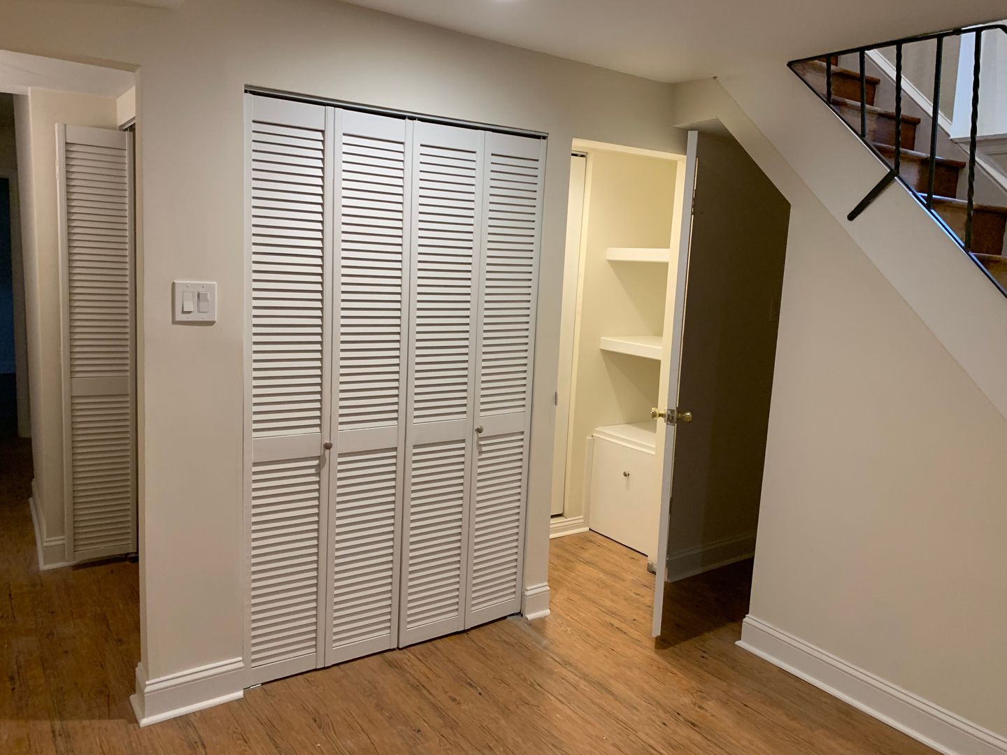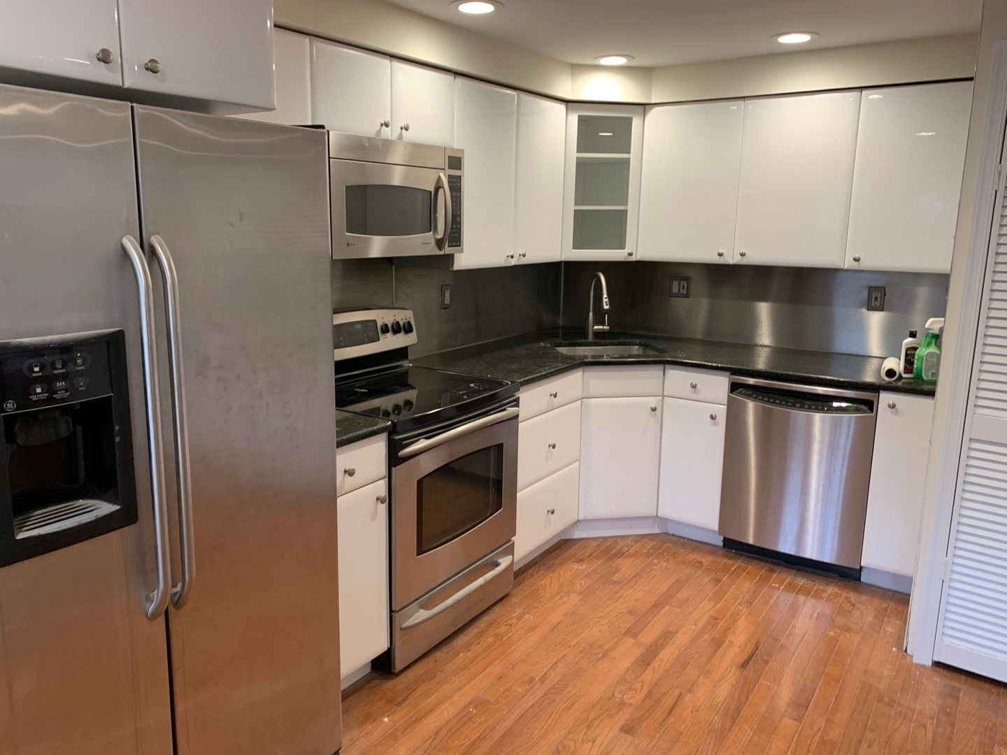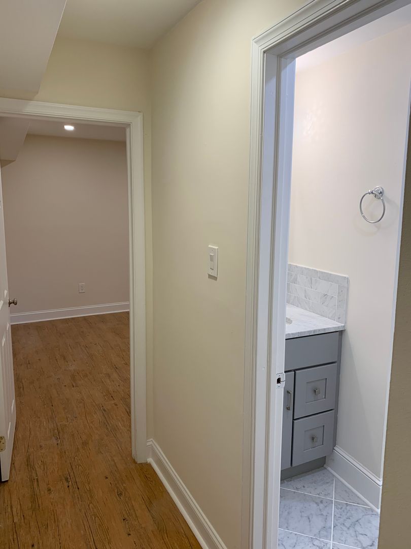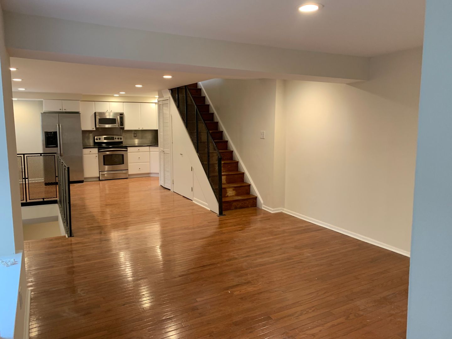 This apartment is nice and quiet as it is on the rear of the building. Enter on the first floor to hardwood floors spanning the living room and kitchen which features stainless steel appliances and granite counters. Take the stairs up to the 2nd floor to a bright bedroom & bathroom with a large closet that has built-in organizers. There is also enough room for small sitting area or home office on the 2nd floor. From the kitchen, take the stairs down to the lower level which contains another living room area, the 2nd bedroom and another full bathroom.